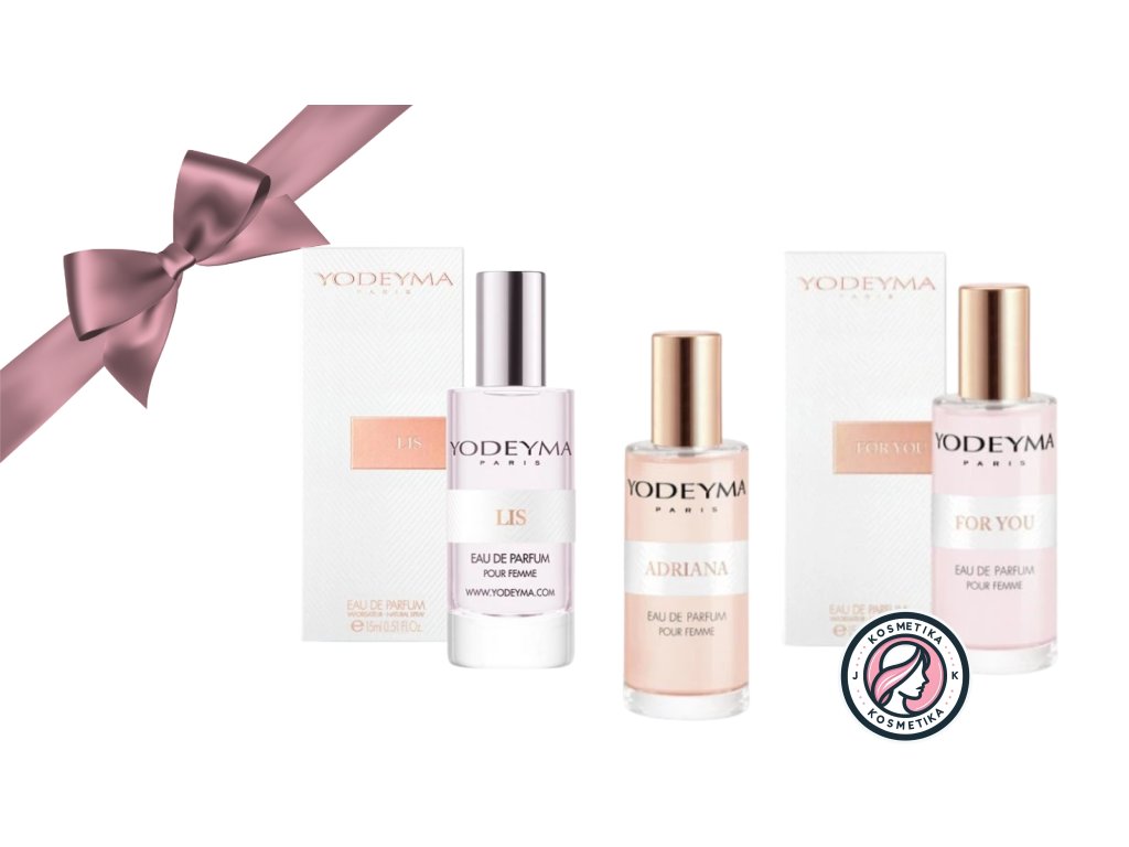 V balíčku najdete 3 náhodně vybrané parfémy YODEYMA v praktickém 15ml balení – ideální na cesty, do kabelky nebo jako dárek. Každá vůně je pečlivě vybraná z nejoblíbenějších dámských parfémů této značky.